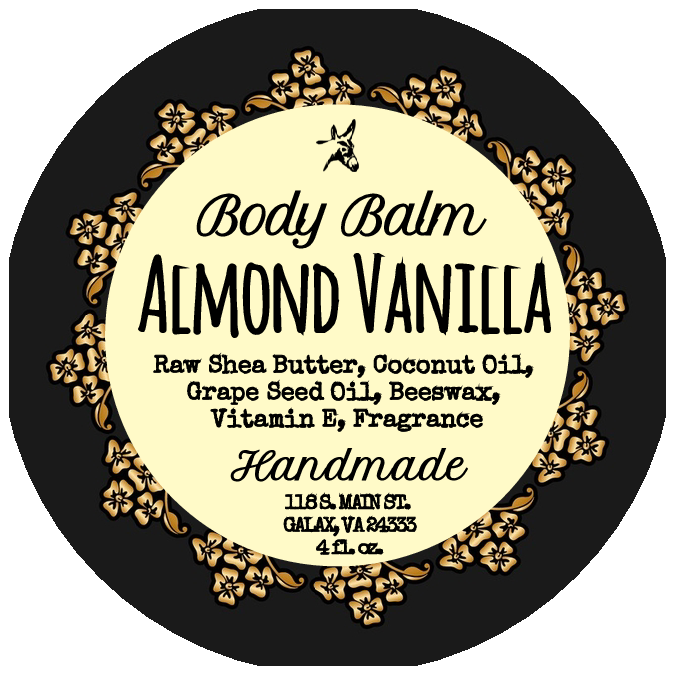 Coconut Oil, Grapeseed Oil, Shea Butter, Beeswax, Vitamin E, essential oil of bitter almond, vanilla fragrance.
