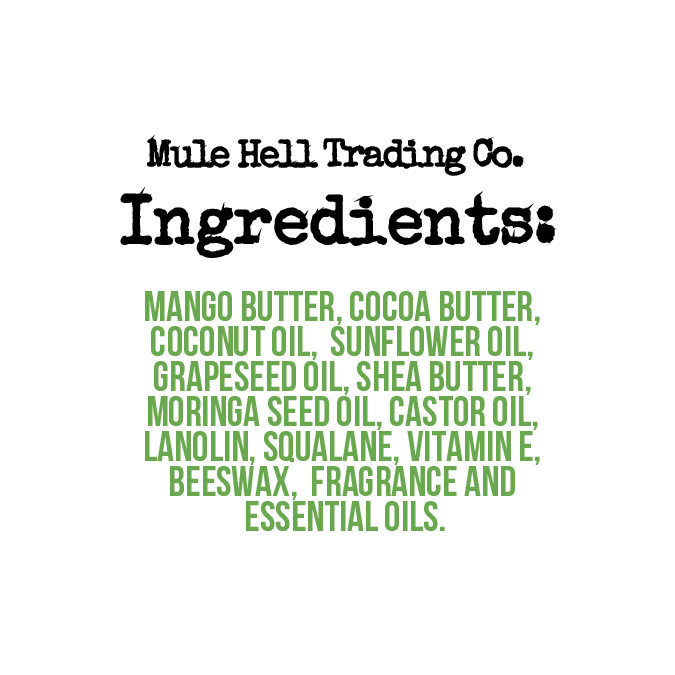 Grapeseed oil, coconut oil, beeswax, castor oil, jojoba oil, lanolin, and vitamin E.