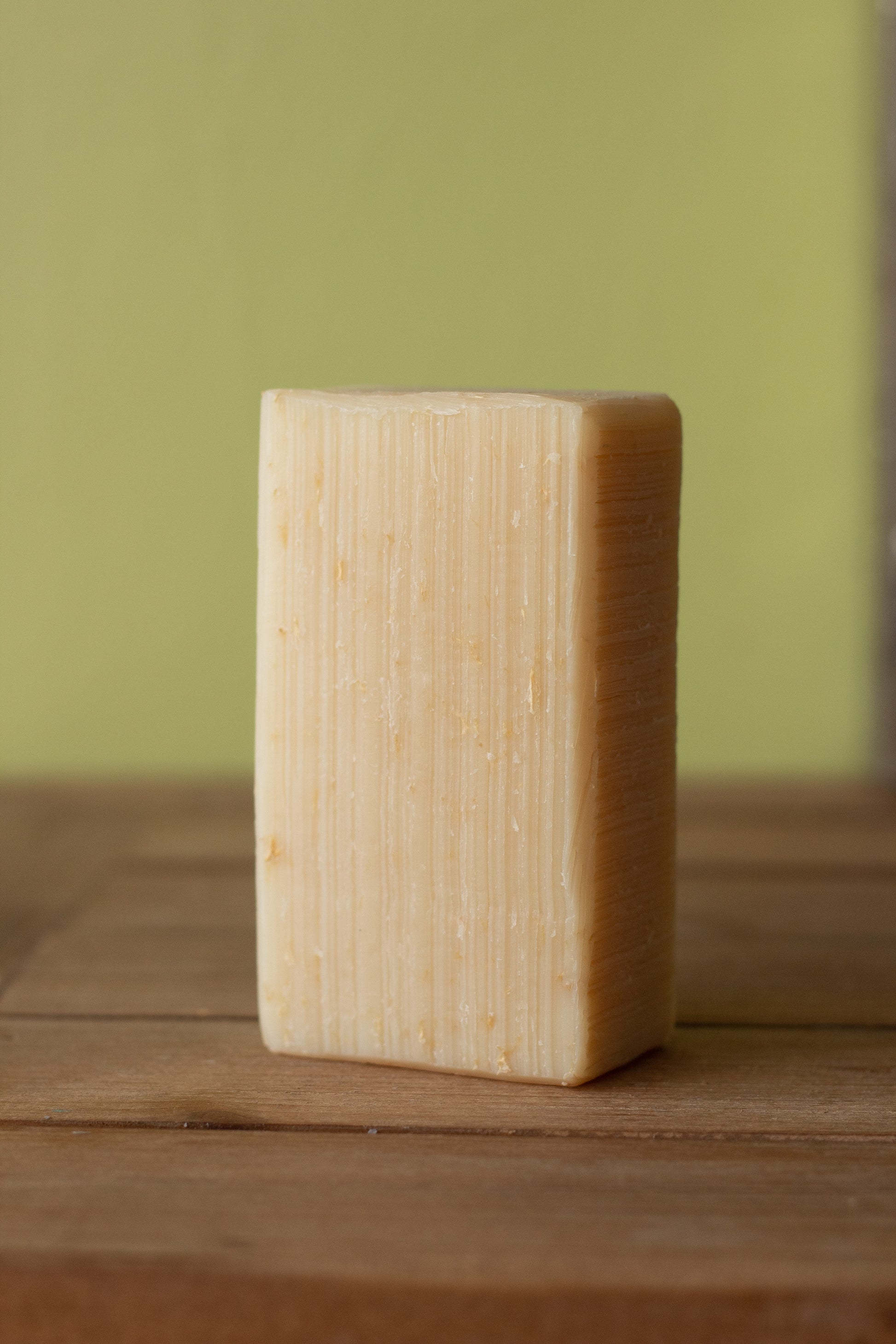 Our exfoliating lavender bar is made with ground luffa and colloidal oatmeal. Other ingredients include, saponified oils of olive oil, rice bran oil, coconut oil, palm kernel oil, water, goat's milk, essential oil of Lavender.