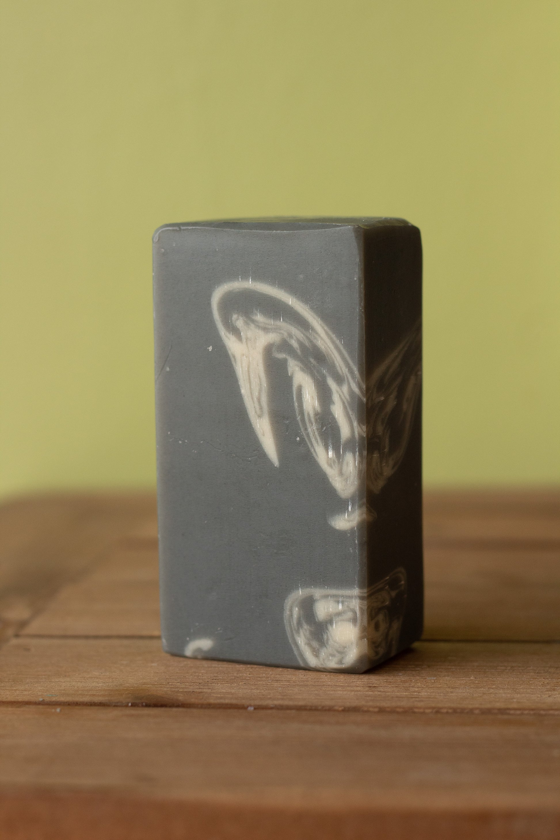 Ingredients: Saponified oils of olive oil, rice bran oil, palm kernel oil, coconut oil, water, goat's milk, activated charcoal, titanium dioxide, fragrance.